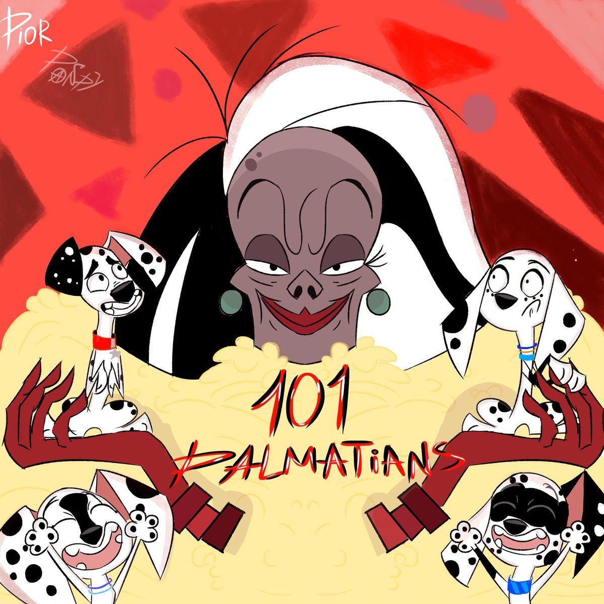 1030AM 101 Dalmatians When a litter of Dalmatian puppies. The first film establishes that she and Cruella De Vil had gone to school together as children and were apparently friends at one points. When a litter of Dalmatian puppies are abducted by the minions of Cruella de Vil the parents must find them before she uses them for a diabolical fashion statement.